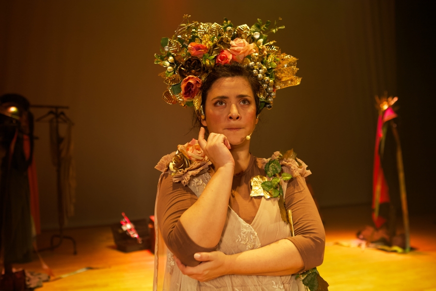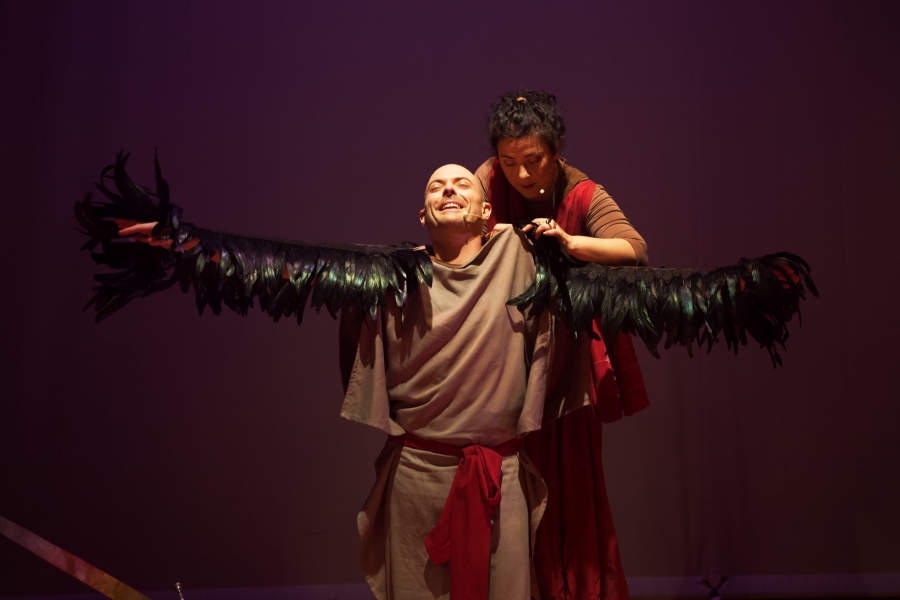 "Entre mitos anda el juego" es la adaptación libre (en inglés y castellano) de Trama Teatro de los mitos de Aracne, Ícaro yDeméter dirigida al público familiar. Los juglares tiran de baúl y elementos básicos para construir